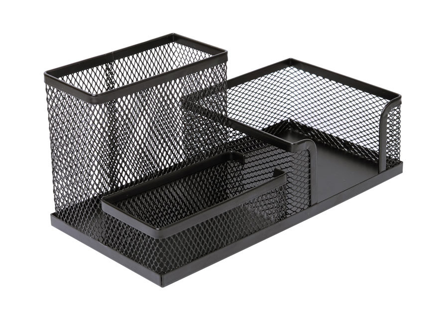 Organizér nabízí dostatek prostoru pro uložení psacích potřeb a drobných kancelářských předmětů. Součástí je držák na tužky, přihrádka pro další kancelářské doplňky a praktická kostka na poznámkový bloček, která vám umožní mít důležité poznámky vždy na dosah ruky.