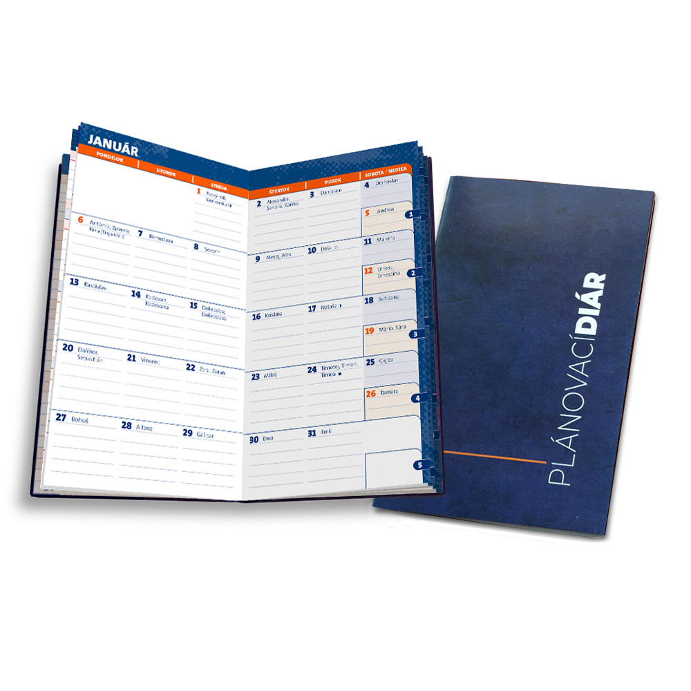 Mesačný plánovací diár obsahuje 48 strán v slovenskom jazyku.