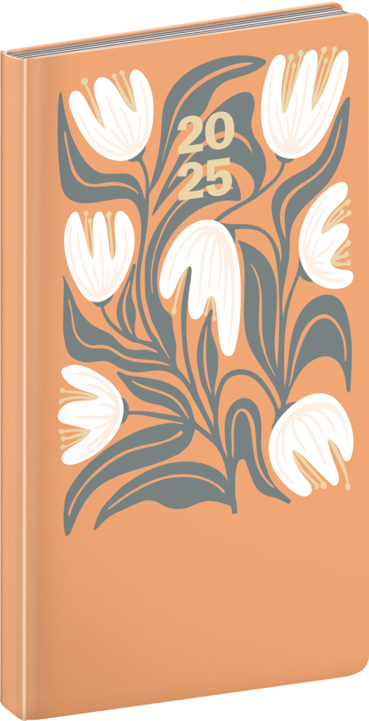 Kapesní diář Cambio 2025, oranžové květiny, 9 × 15,5 cm