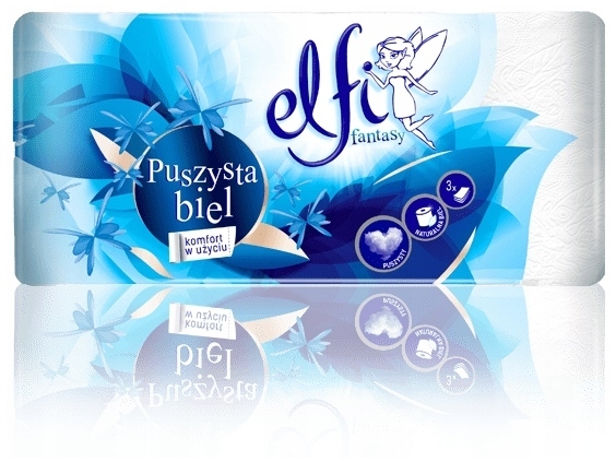 Papier toaletowy 3-wartwowy biały 8 rolek Puszysta biel, Elfi