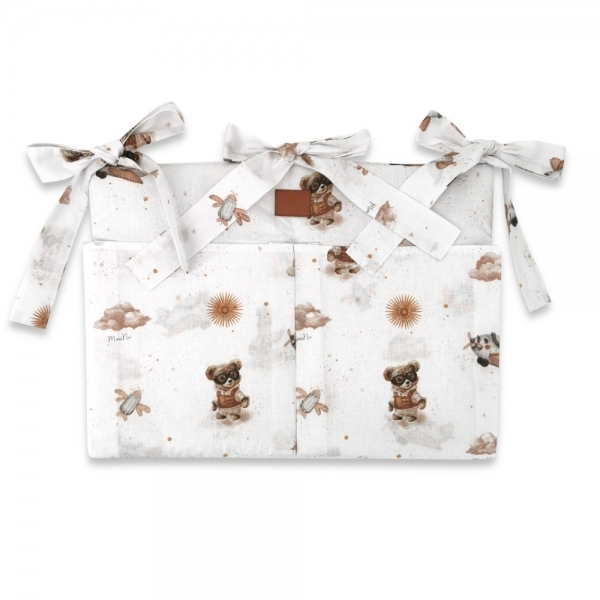 Kapsář na postýlku, bavlna, Méďa pilot - bílá, béžová