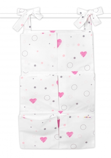 Kapsář na postýlku 6 kapes Baby Nellys, I love Girl, růžový/bílý