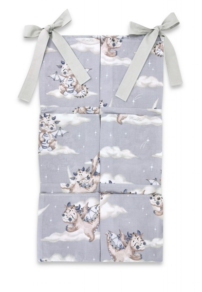 Kapsář na postýlku 6 kapes, bavlna, Dráček Mráček - šedá/modrá