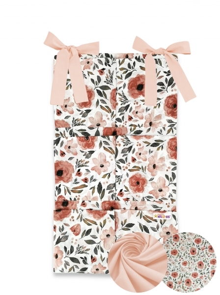 Bavlněný kapsář na postýlku Baby Nellys 6 kapes, Begónie, meruňková