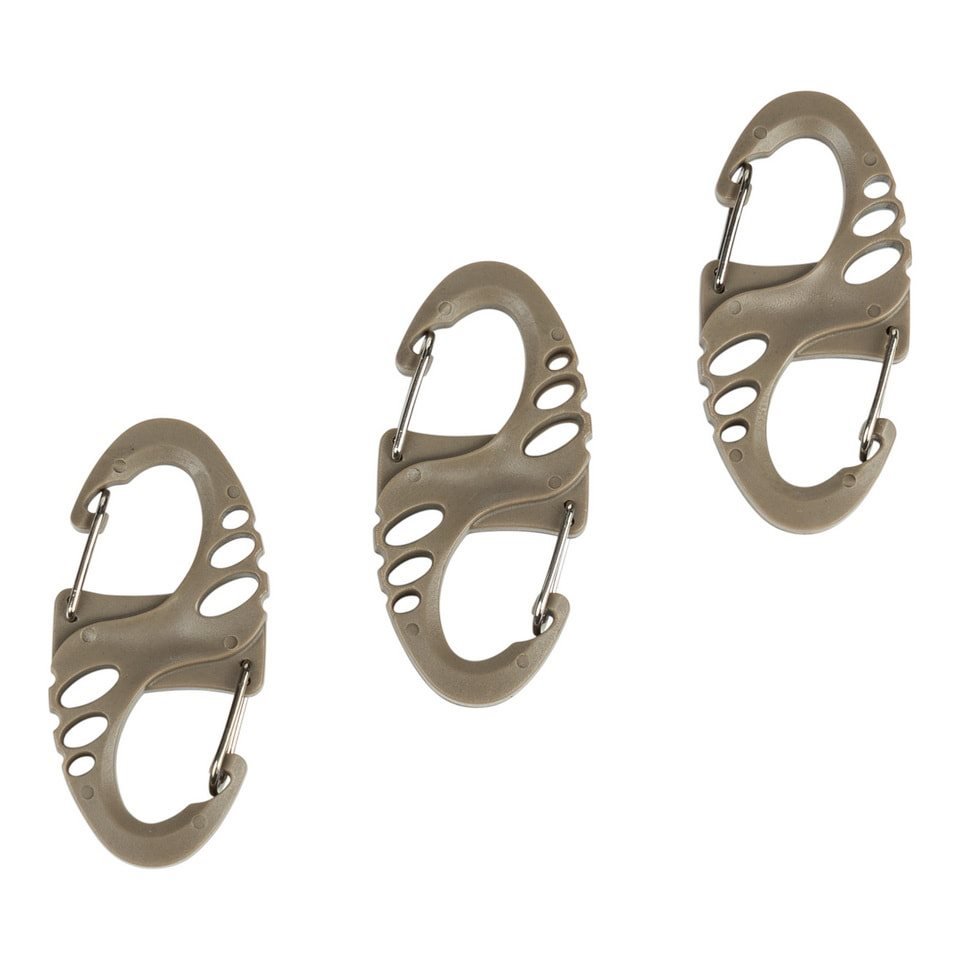 Praktický set tří karabinek vyrobených z kombinace plastu a hliníku. Ideální jako klíčenka, na zavěšení drobného vybavení apod.
