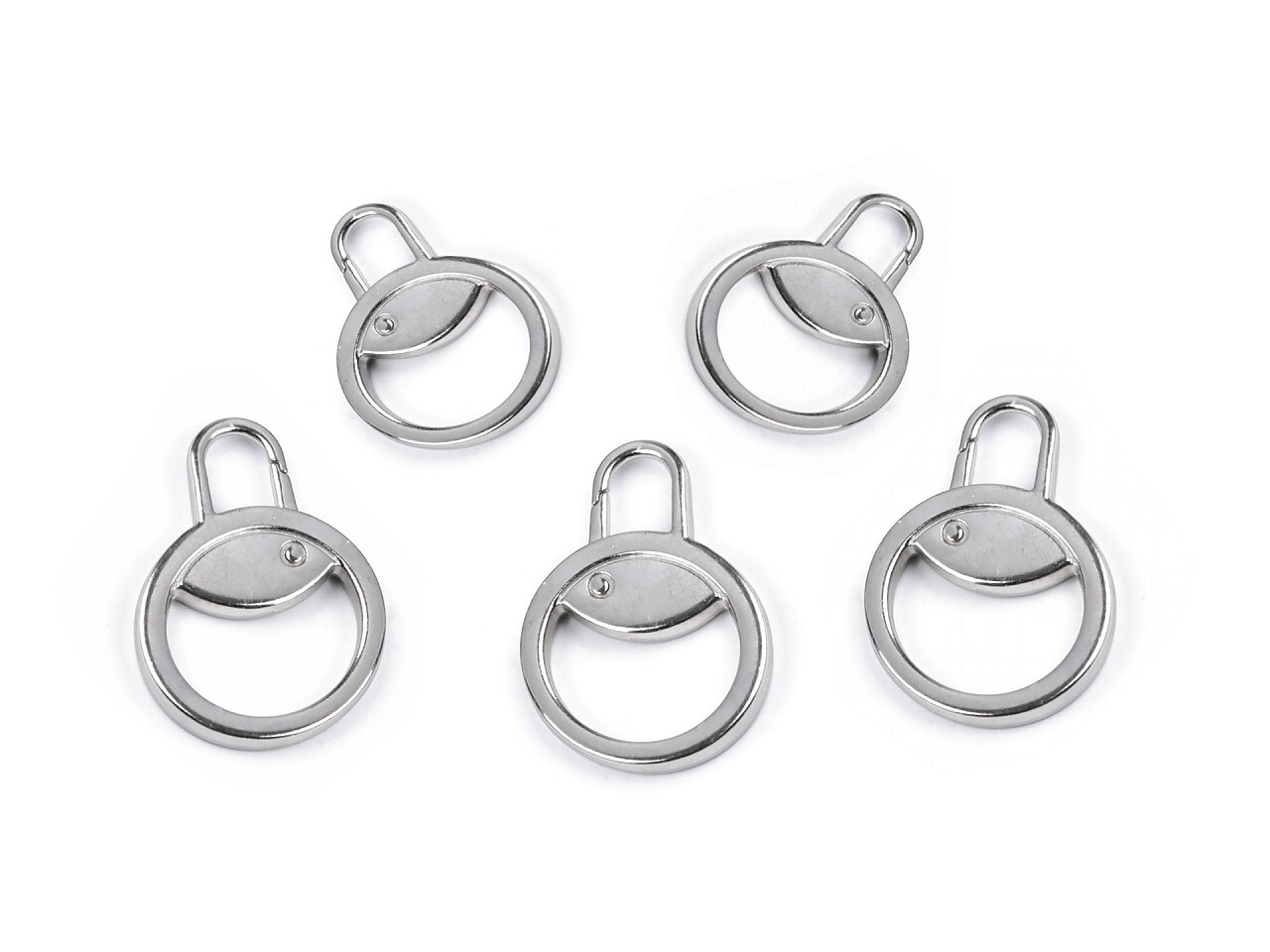 Kovová karabina / taháček na zip - 5 ks - nikl