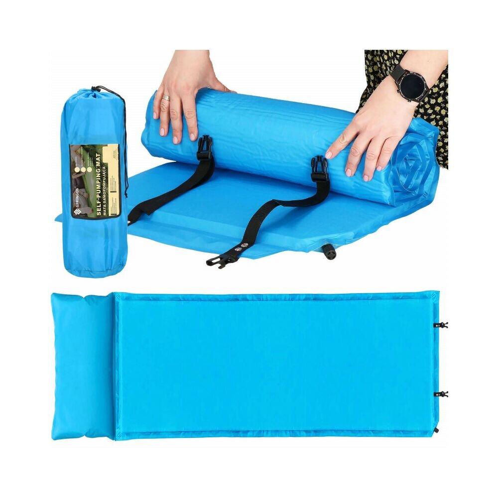Samonafukovací karimatka s polštářem 186x53x2,5 cm, modrá SPRINGOS ROVER