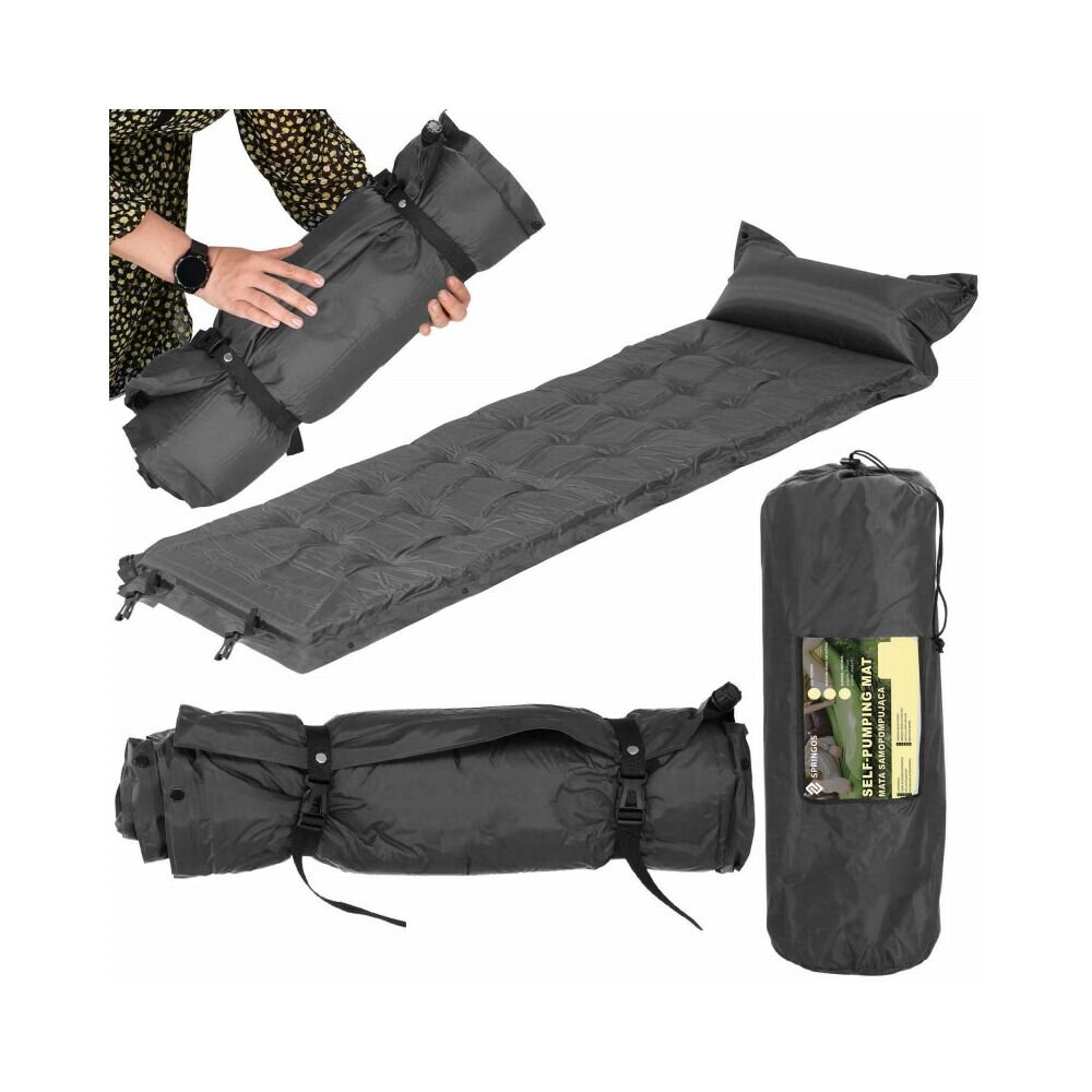Samonafukovací karimatka s polštářem 193x68x3,5 cm, šedá SPRINGOS PHOENIX