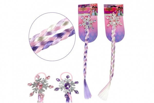 Gumička do vlasů s ozdobou s barevným copem 2 barvy v sáčku 11x46x2cm