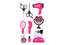 Kosmetický set s fénem. Velikost fénu 14cm. obsahuje: fén, hřeben, zrcátko, nůžky, zrcátko na postavení, sadu štětců. 2xAAA baterie nejsou součástí. číst celé