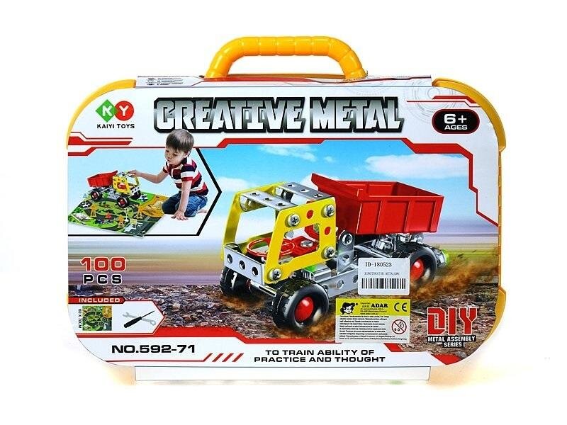 zestaw 100 metalowych klocków do skręcania, z matą z ulicą, w walizce; Box číst celé