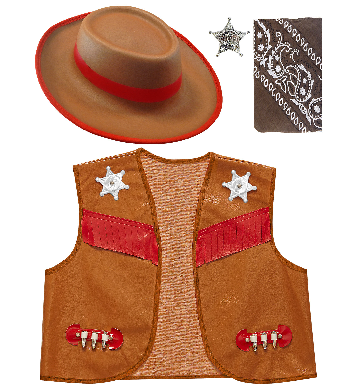 Naše kovbojská souprava je ideálním doplňkem pro malé dobrodruhy, kteří chtějí zažít pravou západní atmosféru. Skvělá volba pro karnevaly, oslavy narozenin nebo hry na hrdiny.