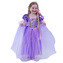 Úchvatný dívčí kostým pro princezny! Kostým princezny ve velikosti S je určen pro holčičky ve věkovém rozmezí 4-6 let (110-116 cm). Kostýmek je ušit v růžovo-fialkové barvě a zdoben zlatým lemováním. Součástí kostýmu je čelenka do vlasů s dlouhým blond copem, zdobeným květinkami.
