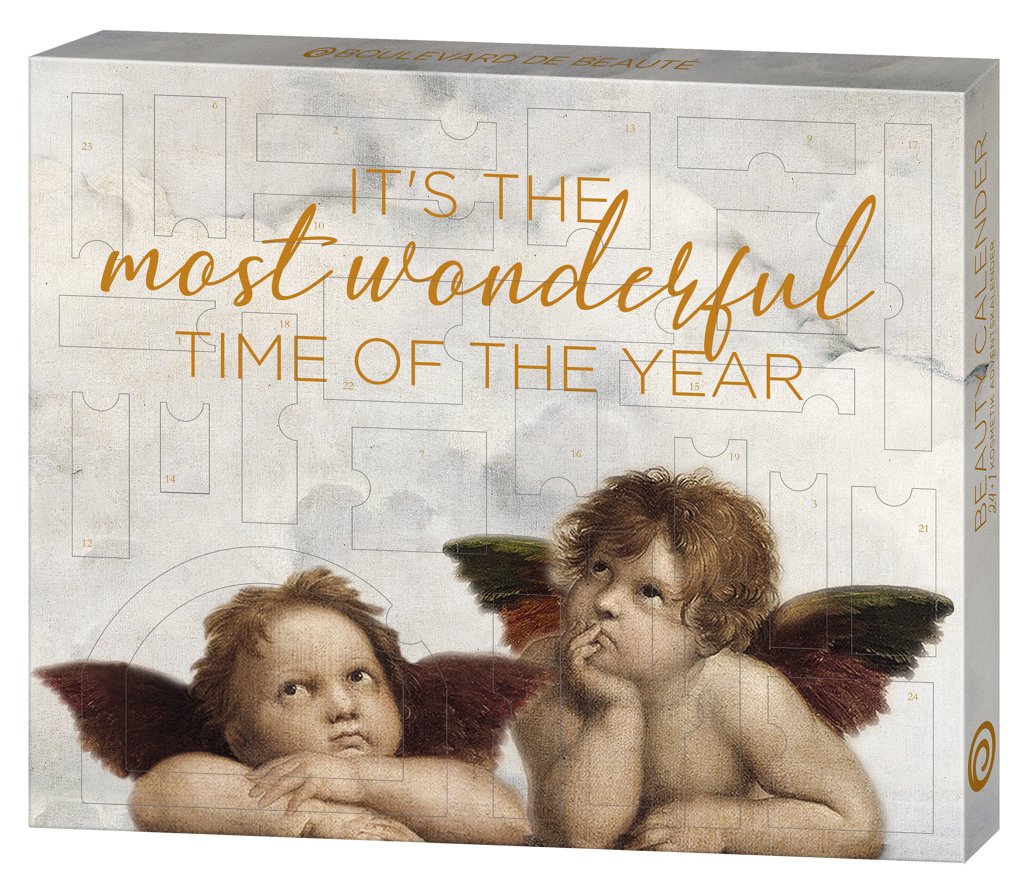 Adventní kosmetický kalendář Angelic- obsahuje barevně ladící kosmetiku od očních stínů a lak na nehty až po lesk na rty a rtěnku. Pomocí nihž můžete vytvořit dokonalý vzhled na Štědrý večer nebo Silvestrovskou párty.