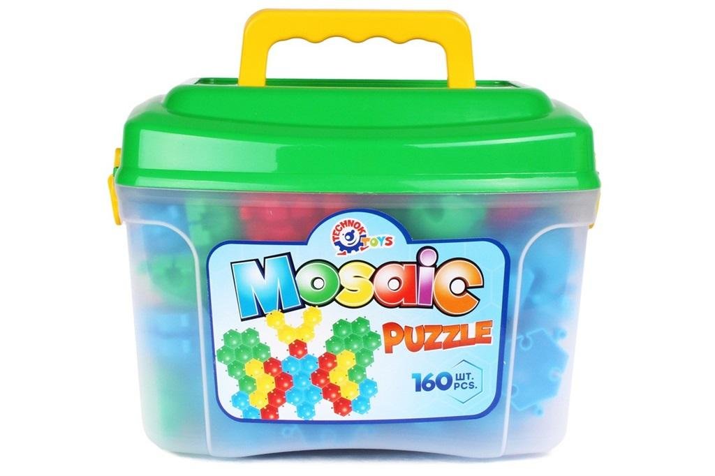 Mozaika składa się z kolorowych sześciokątów (160 części), z których dziecko może ułożyć dowolne kształty i wzory.