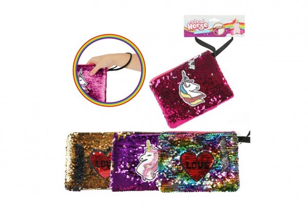 Kabelka na zápěstí s flitry měnícími látka 20x15cm 4 barvy na kartě