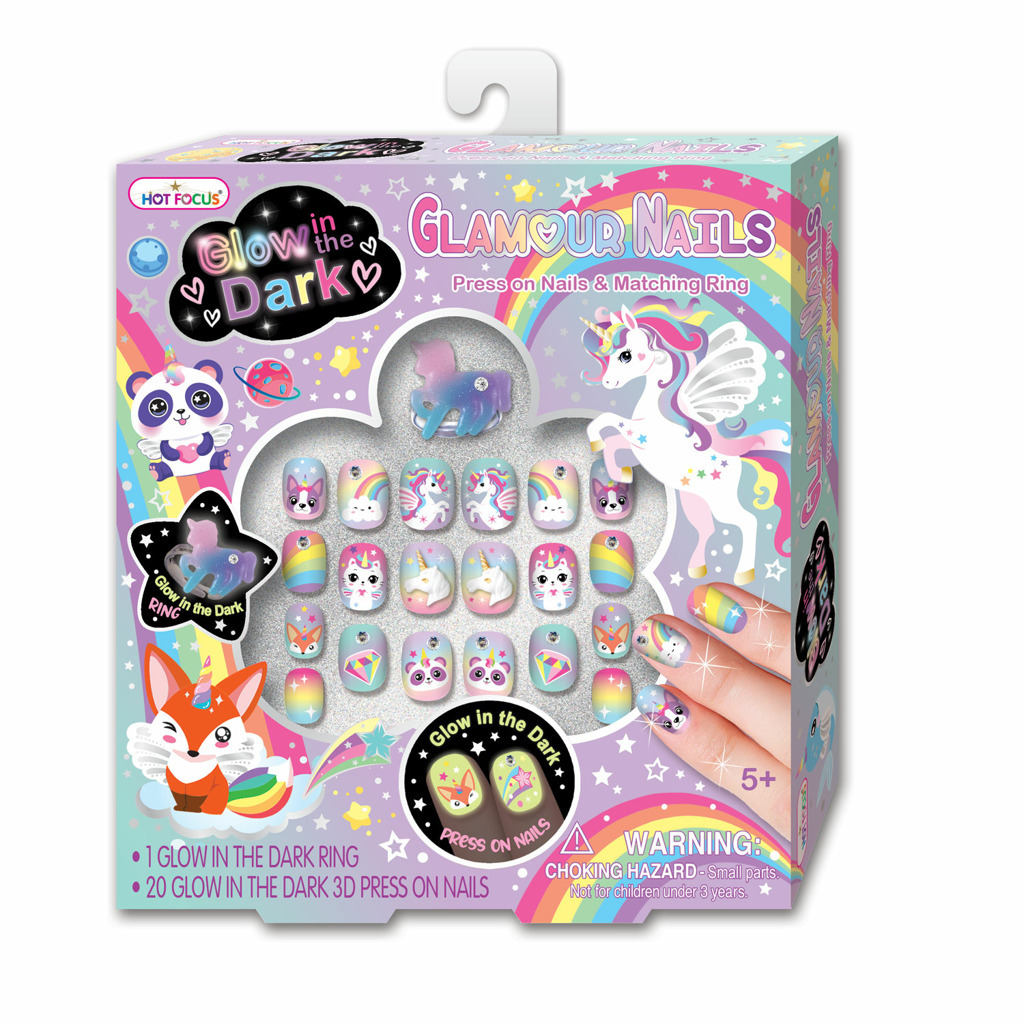 Sada nalepovací nehty s doplňky, svítící ve tmě