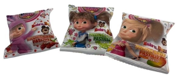 Šumivá tableta do vany Máša a medvěd s vůní rybízu, limetky a manga