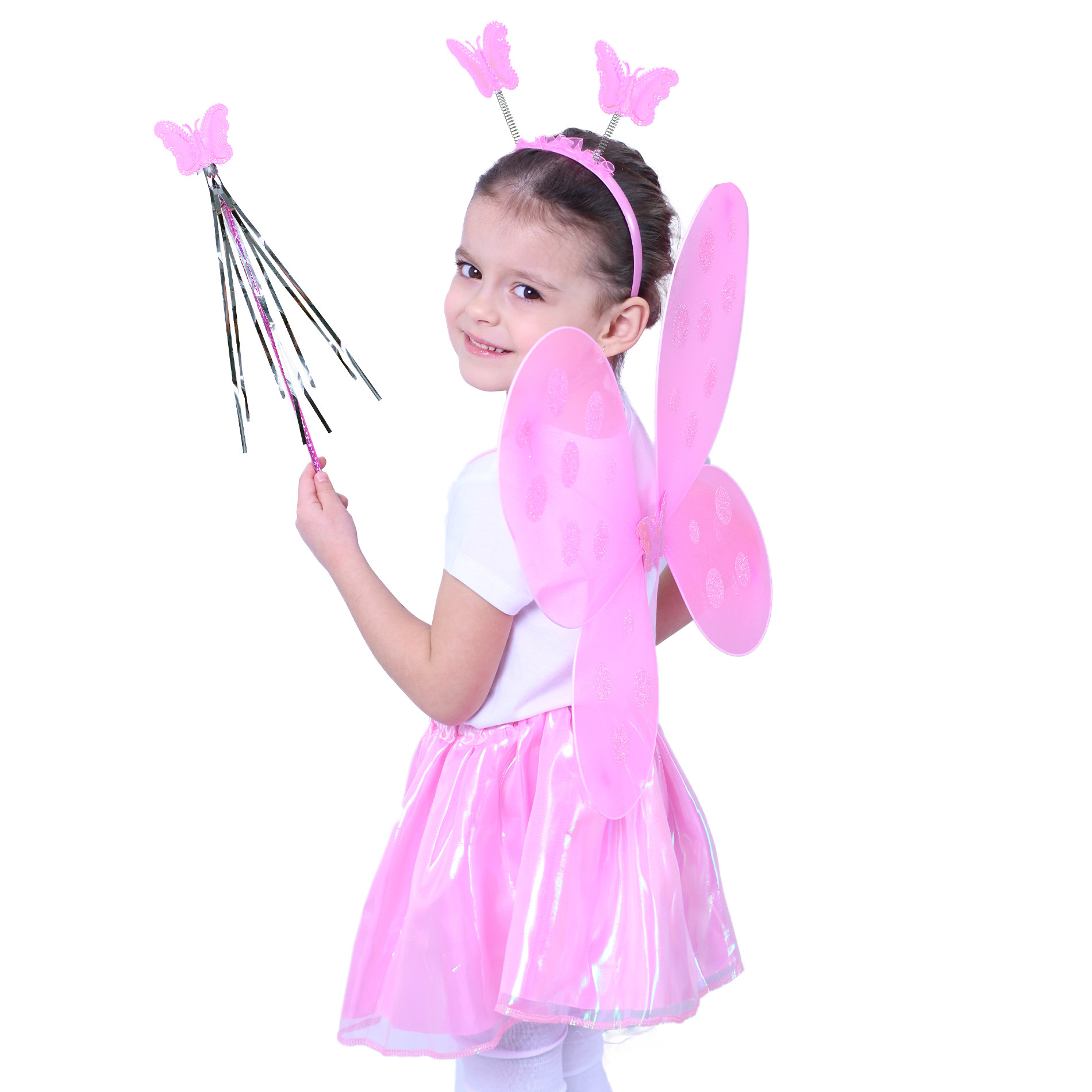Motýlí křídla růžová s čelenkou a hůlkou jsou ideální doplněk, který vykouzlí úsměv na tváři každé holčičky. Tyto nádherné motýlí křidélka a doplňky jsou stvořeny pro malé princezny, které chtějí zažít kouzlo karnevalu či tematické párty.
