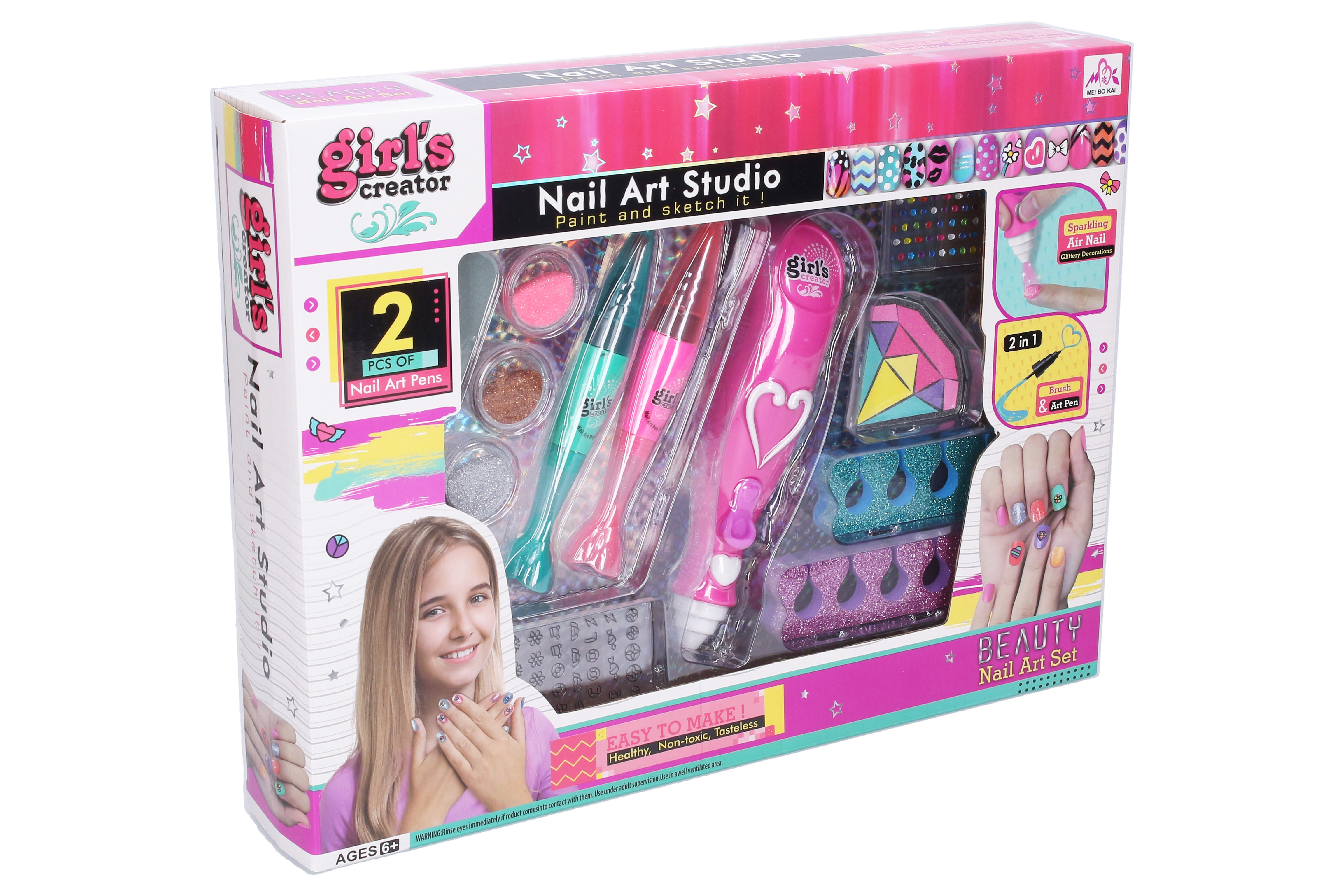 Tvorba nehtů. Součástí 2 barevná pera, aplikátor třpytek, třpytky, pilník, ozdoby a další. 2xAAA baterie pro aplikátor třpytek nejsou součástí. Obrázkový návod na zadní straně obalu. číst celé