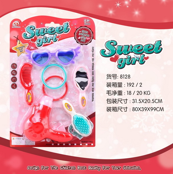 Kosmetický set. Součástí brýle, hřeben, kartáč, zrcátko, fén, 2 náramky. číst celé