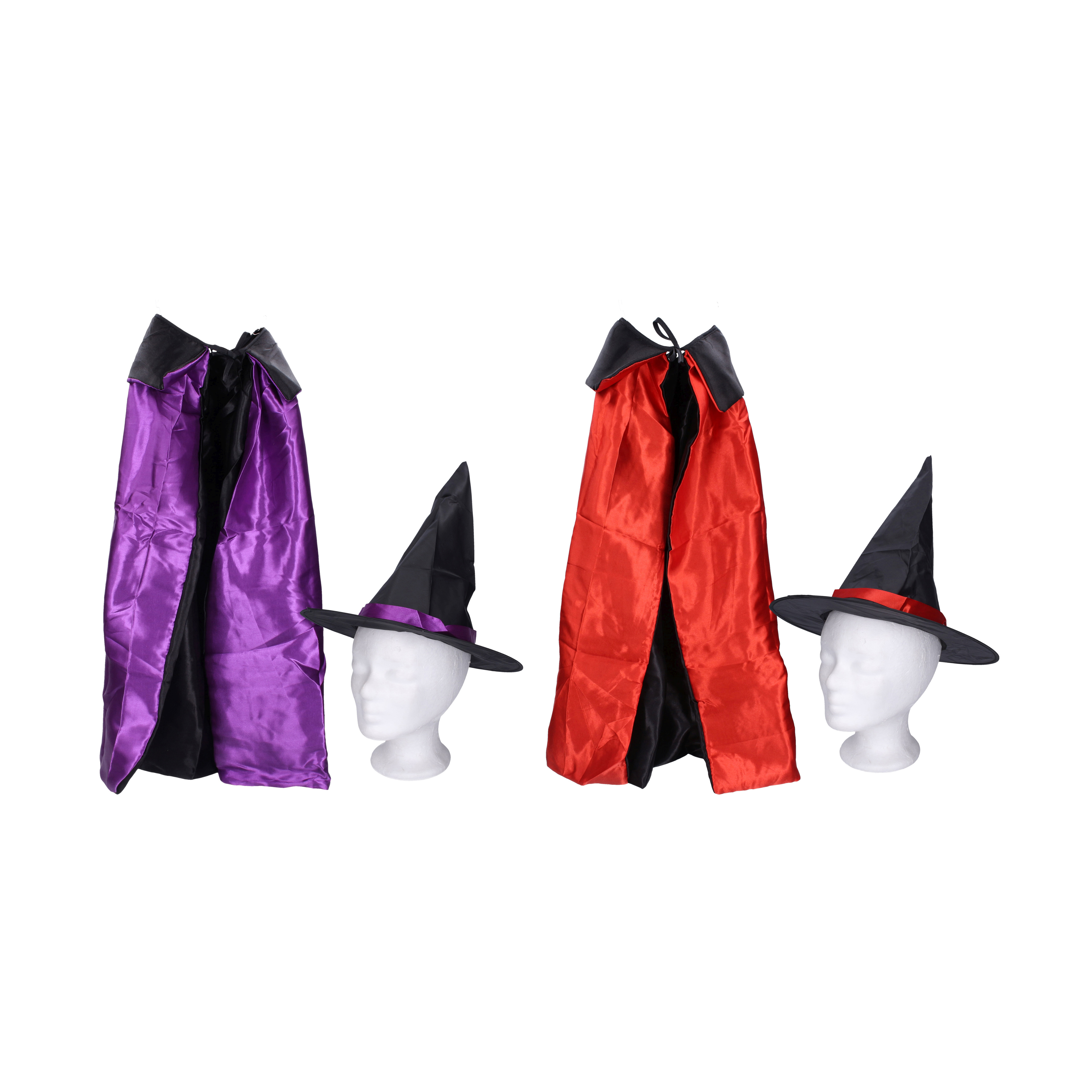 Čarodějnický plášť s kloboukem budou skvělým kostýmem na halloweenskou párty nebo na karneval! Vybrat si můžete červenou nebo fialovou variantu.