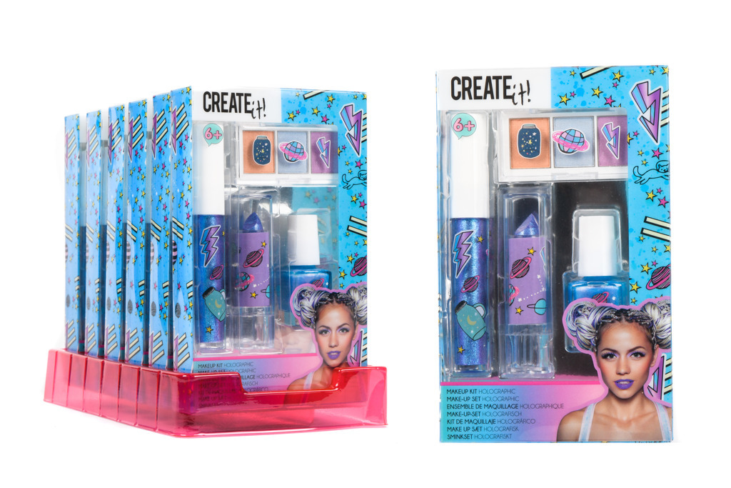 Make up sada holografická obsahuje oční stíny, lesk na rty, rtěnku a lak na nehty - vše v holografických barvách. číst celé
