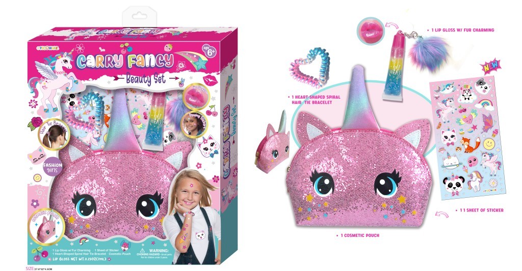 Nádherná sada, která obsahuje nálepky, lesk na rty a kosmetickou taštičku v krásném balení. Zažij spoustu zábavy a ozdob sebe i kamarádky. Vhodné pro děti od 6ti let. číst celé