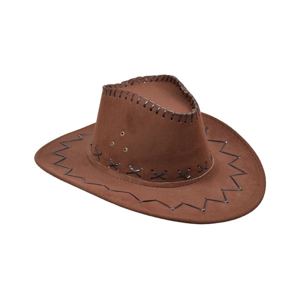 Tento měkký, hnědý velurový klobouk je ozdoben jemnými černými švy, které mu dodávají autentický kovbojský vzhled. Díky univerzální velikosti je pohodlný a vhodný pro většinu dospělých. Je ideální pro doplnění vašeho kovbojského kostýmu na párty, tematické akce nebo jen pro stylovou volnočasovou módu.