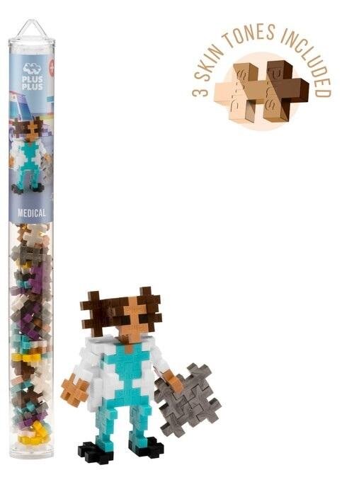 Tuba Plus-Plus zawierająca 100 elementów, które pozwalają zbudować lekarza. Plus-plus to oryginalne klocki wyprodukowane przez duńską firmę, która bardzo wysoko stawia ekologiczny aspekt swoich produktów. Klocki nie zawierają PVC oraz ftalanów i świetnie sprawdzą się dla dzieci już od 3 roku życia. Niezwykle proste elementy dają możliwość dwóch form zabawy budowy na płasko oraz tworzenia trójwymiarowych konstrukcji, które znacznie rozwijają wyobraźnię dziecka. Możliwość tworzenia różnych kombinacji zapewnia zabawę, która się nie nudzi i jest dla dziecka atrakcyjna. Inwestycja w takie klocki to świetny wybór, by rozwijać zdolności manualne, pobudzać kreatywność i doskonalić motorykę małą. Dla dzieci w wieku od 5 lat