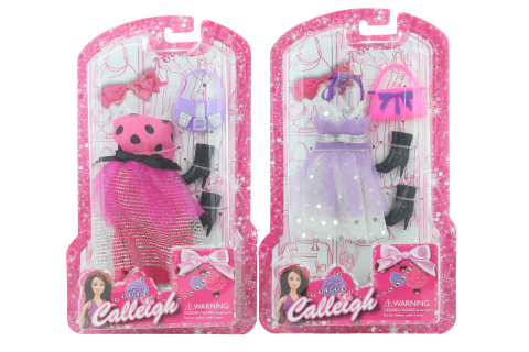Sada obsahuje šaty pro panenku, boty na podpatku a kabelku. Rozměry balení cca 15 x 25 x 3 cm. Materiál polyester a plast. Věk 3+