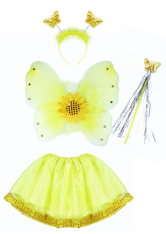 - Kompletní sada: Zahrnuje sukýnku, křídla, čelenku i hůlku pro dokonalý kostým.