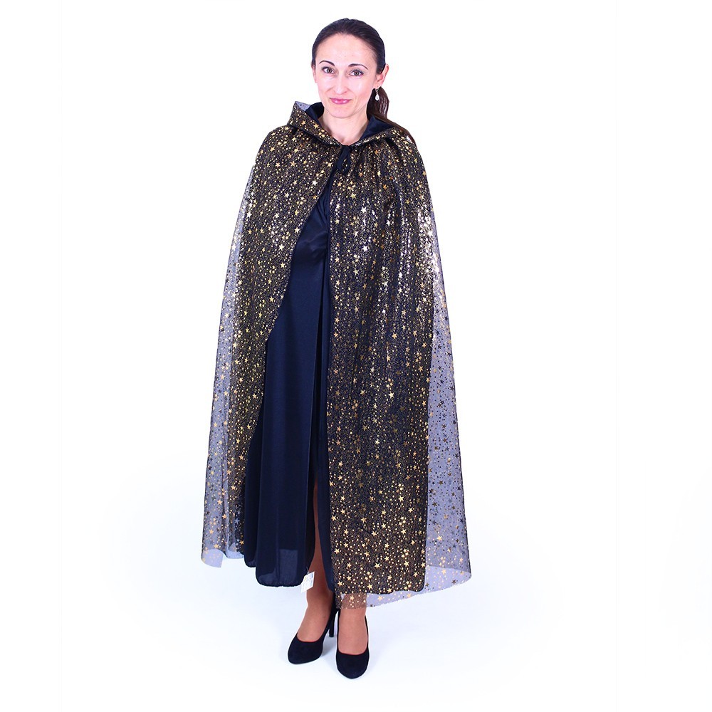 Kouzelný černý plášť pro čarodějnice! Plášť na zavazování je určen pro dospělé. Tento stylový kousek má navíc kapuci a je dekorován potiskem zlatých hvězd. Plášť je dlouhý cca 116 cm. číst celé