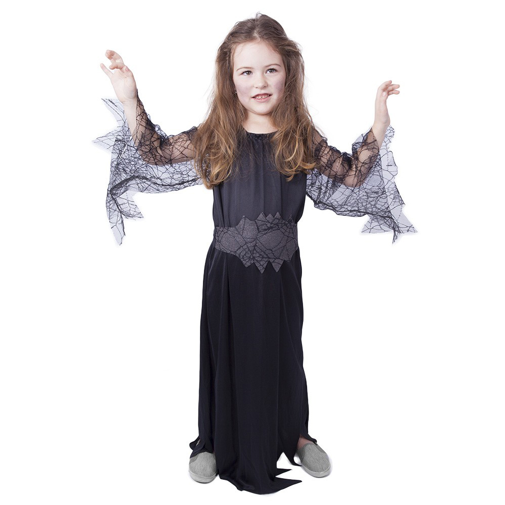 Kostým pro malé čarodějnice! Kostým černé barvy ve velikosti M je určen pro holčičky ve věkovém rozmezí 6-8 let (116-128 cm). Šaty jsou dekorovány průhlednými rukávy s motivem pavučin. S tímto úchvatným kostýmem budeš vypadat jako pravá čarodějka! číst celé