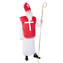 Kostým obsahuje košili v délce 145 cm od ramen, mitru (čepici) a ornát v klasické červeno-bílé barevné kombinaci. Díky univerzální velikosti odpovídající evropskému značení L je vhodný pro většinu dospělých. Kostým je navržen tak, aby byl snadno použitelný a pohodlný, ideální pro jednorázové použití během mikulášských akcí.