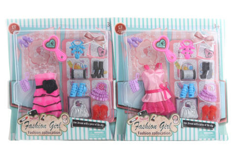 - Obsahuje šaty na panenku a různé doplňky (kabelky, boty, brýle).