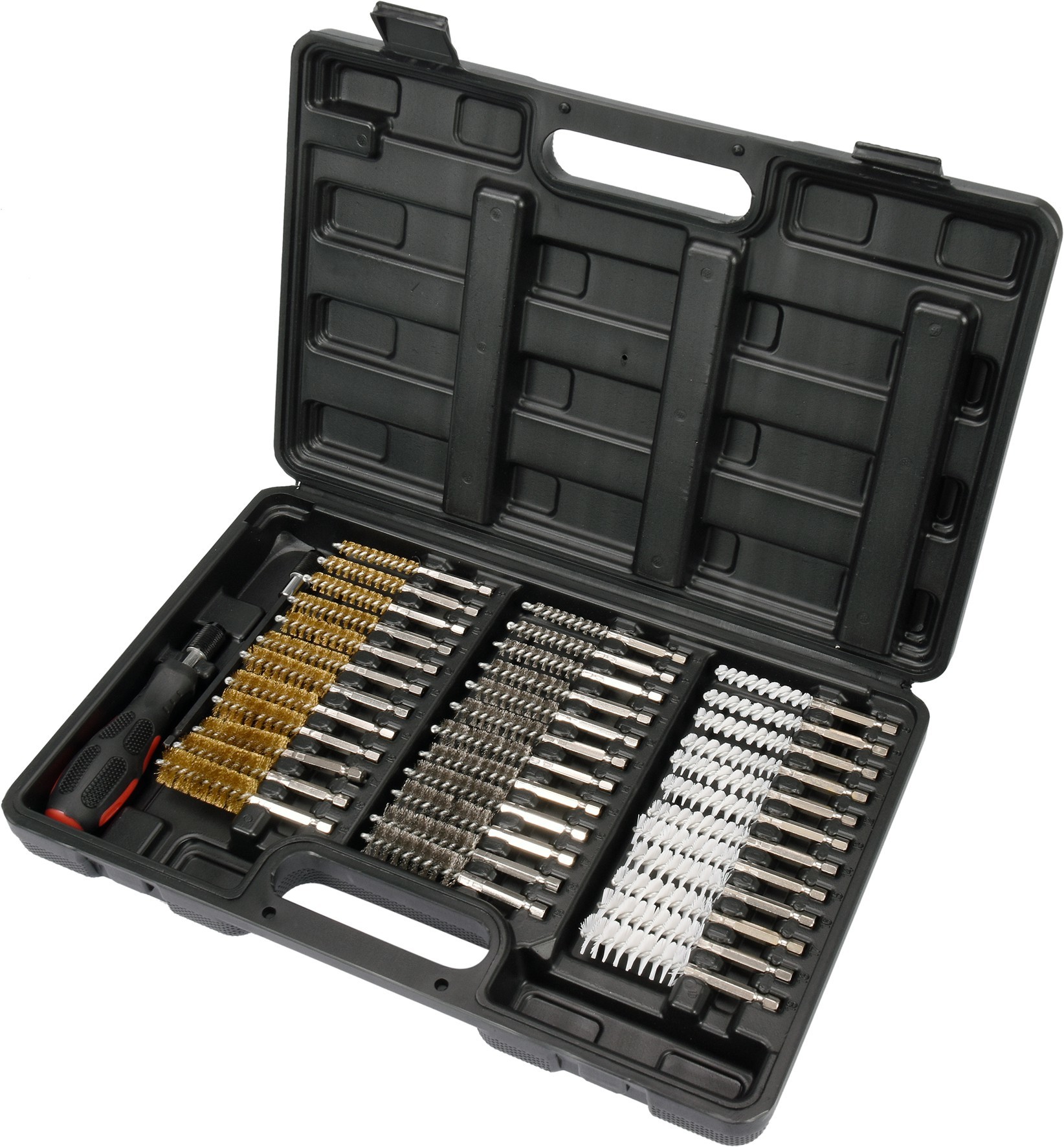 Sada obsahuje 12 ks kartáčů z nerezové oceli, 12 ks kartáčů z mosazi a 12 ks kartáčů z nylonu. Jednotlivé kartáče jsou pak odstupňovány podle průměru od 8 do 19 mm a jsou zakončené stopkou 1/4".