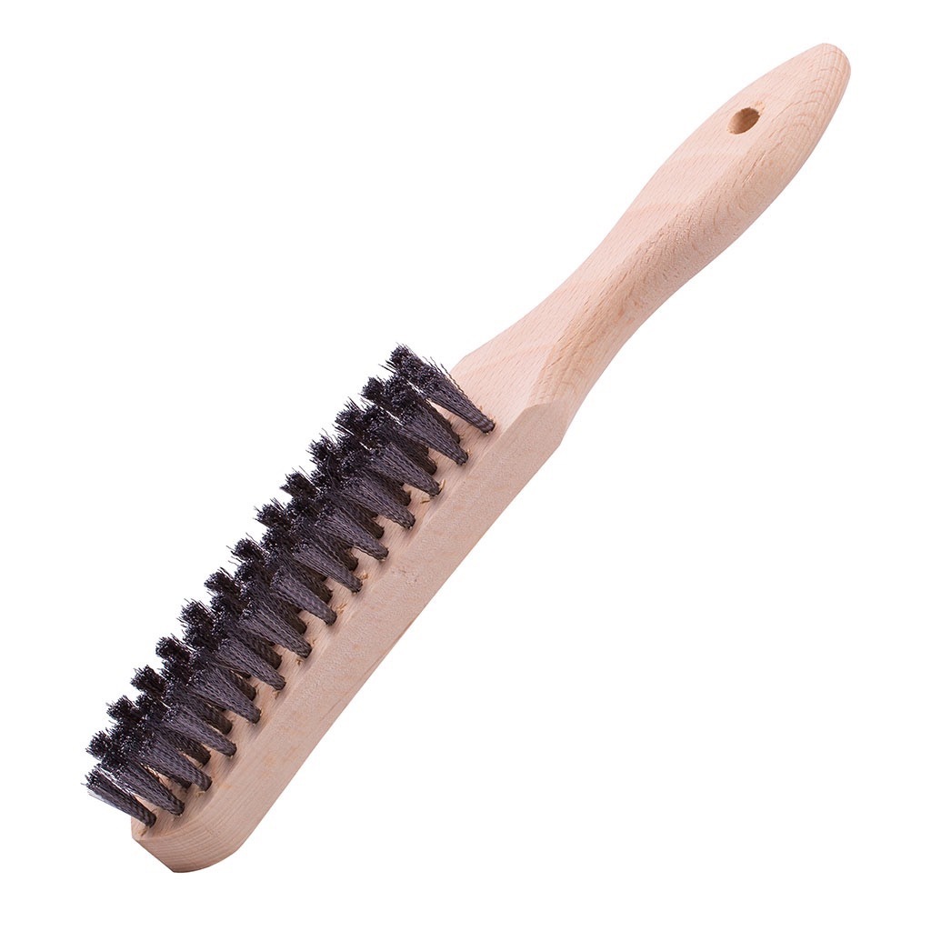 KART - ruční kartáč čtyřřadý - ocel vlnitá 0,25mmRuční kartáč se zahnutou dřevěnou rukojetí, osazený vlnitým ocelovým drátem o průměru 0,25 mm, ve 4 řadáchVýroba v ČR
