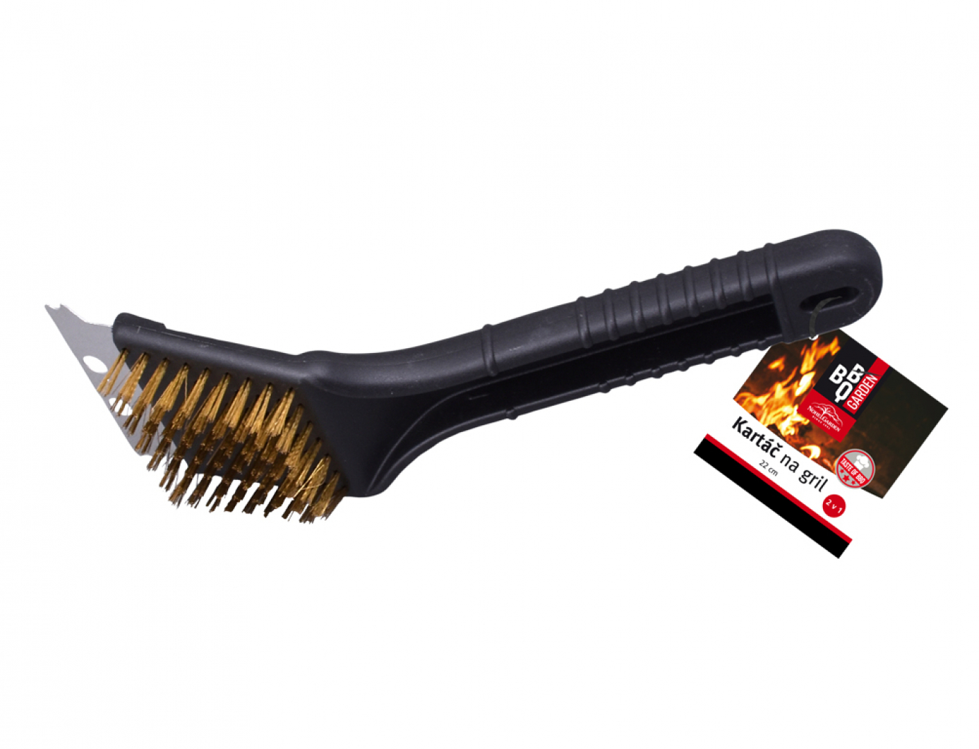 - Funkce: kartáč na gril + ocelová škrabka