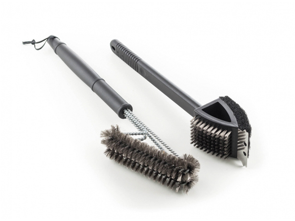Abyste mohli na svém grilu připravovat chutné pokrmy, musíte mu věnovat řádnou péči. Je důležité gril po každém použití důkladně vyčistit, aby na něm nezůstaly připálené zbytky z předešlého grilování. Jen tak dosáhnete těch nejlepších kulinářských výsledků. S pomocí grilovacího čistícího setu G21 udržíte svůj gril ve formě. Set se skládá ze dvou kusů náčiní. Na jedné rukojeti je umístěn plochý drátěný kartáč, obdélníková drátěnka a kovová škrabka. Tato část setu je určena převážně pro údržbu grilovacího litinového plátu a kamene. Na druhé rukojeti jsou nasazeny dva oválné drátěné kartáče, které vám pomohou s důkladným vyčištěním grilovacích roštů.