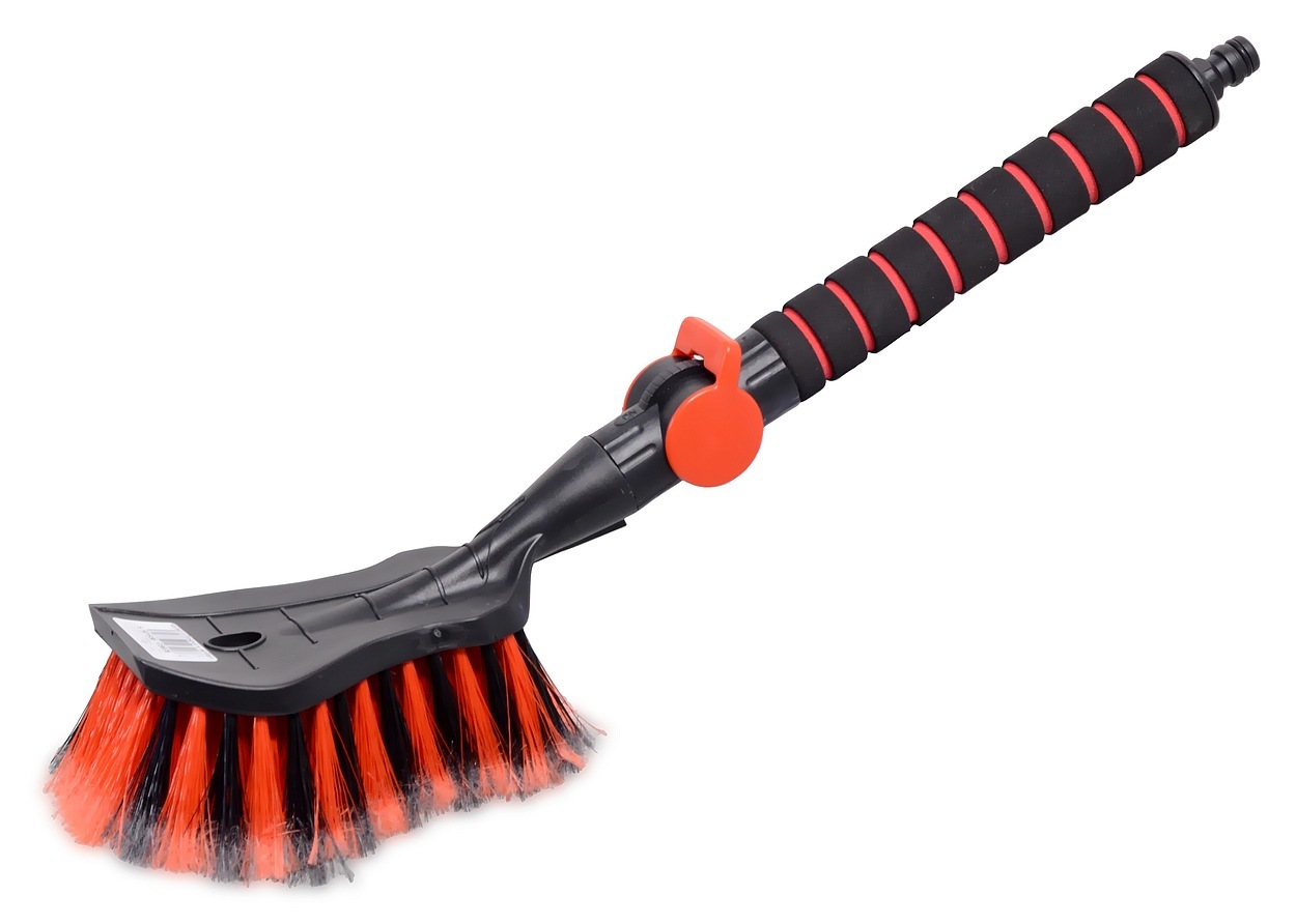 Robustní průtokový kartáč s příjemnou měkkou rukojetí, s šetrnými štětinami a regulačním ventilem.