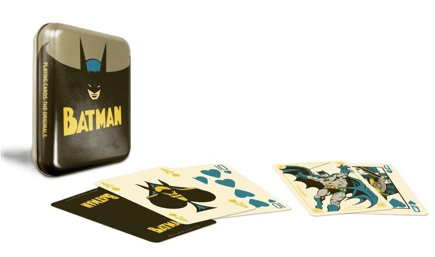 Stylizowana kultowym komiksem Batman talia kart do gry. 55 kart pakowanych w personalizowaną metalowa puszkę.