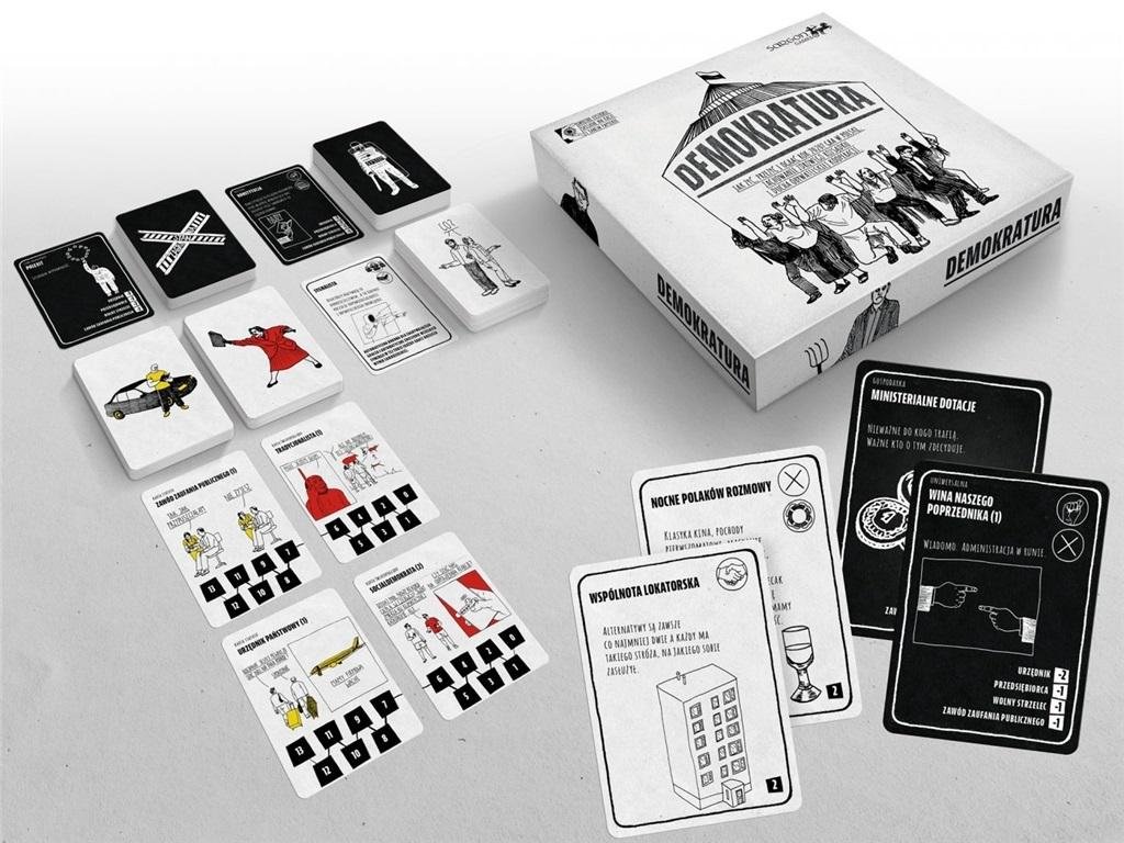 Demokratura to pierwsza tak poważna próba wykorzystania gry towarzyskiej w roli nowego medium i platformy komunikacji. Rozrywka i refleksja z nutką obywatelskiego oporu. Zawartość: 1x talia Systemu (60 kart) 3x talia Gracza (60 kart/talia) 1x zestaw kart Statusu (8 kart) 1x zestaw kart Światopoglądu (8 kart) 1x dodatek: ,,Stan Zagrożenia" (6 kart) ? Kompletny zestaw startowy dla 3 uczestników. ?