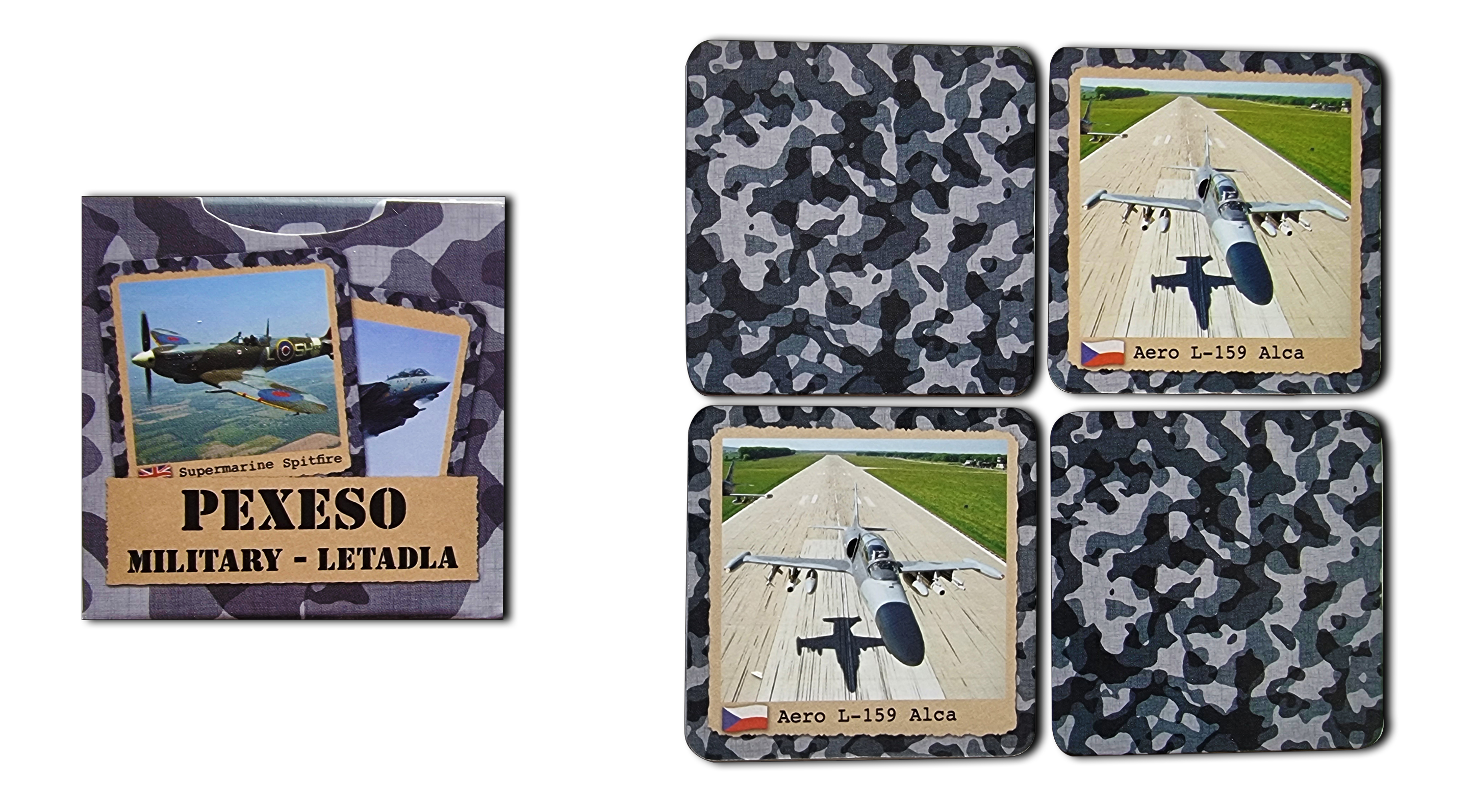 … jedna z nejznámějších dětských her ve zcela originální grafice s fotografiemi historických i současných válečných letadel. Hra vznikla ve spolupráci s nakladatelstvím Naše vojsko - knižní distribuce, s.r.o. Číslo 3301, revers camo, papírová krabička počet 80 listů formát karet 55/55 mm papír...