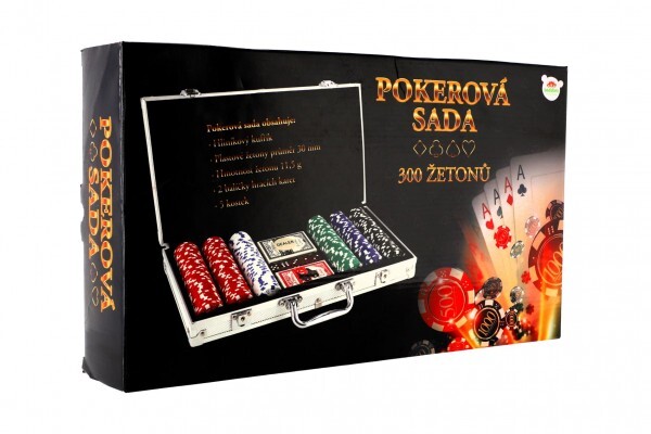 Poker sada 300ks + karty + kostky v hliníkovém kufříku v krabici 40x24x8cm