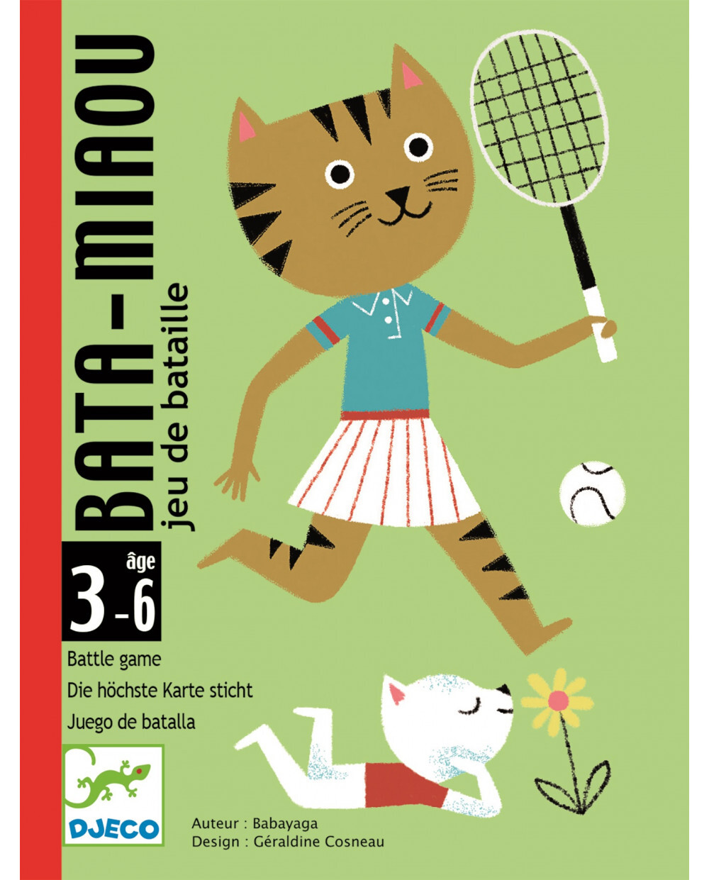 DJECO Karetní hra Bata - Mňau je ideální volbou pro malé hráče ve věku 3 až 6 let, kteří si chtějí vyzkoušet svoje reflexy a postřeh. Hra zaručuje rychlou akci a zábavu pro celou rodinu či skupinku kamarádů.