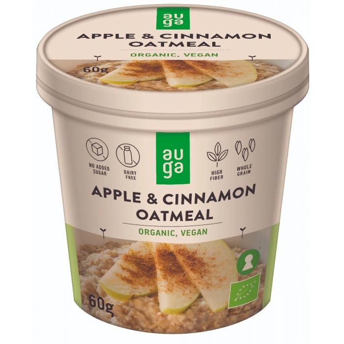 Bio organická celozrnná kaše jablko-skořice: celozrnný oves* 75%, jablka* 13,8%, datlový prášek*, skořice* 0,7%. Obsahuje lepek. Obsahuje přirozeně se vyskytující cukry.