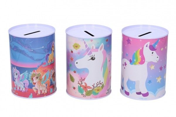 Pokladnička Jednorožec plech 5 druhů 8,5x12cm v sáčku