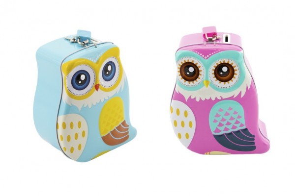 Pokladnička Sova plech se zámkem 16cm 2 barvy - na výběr 1KS