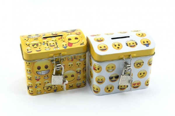Pokladnička smajlík truhla se zámkem plech 9x8cm asst 3 druhy